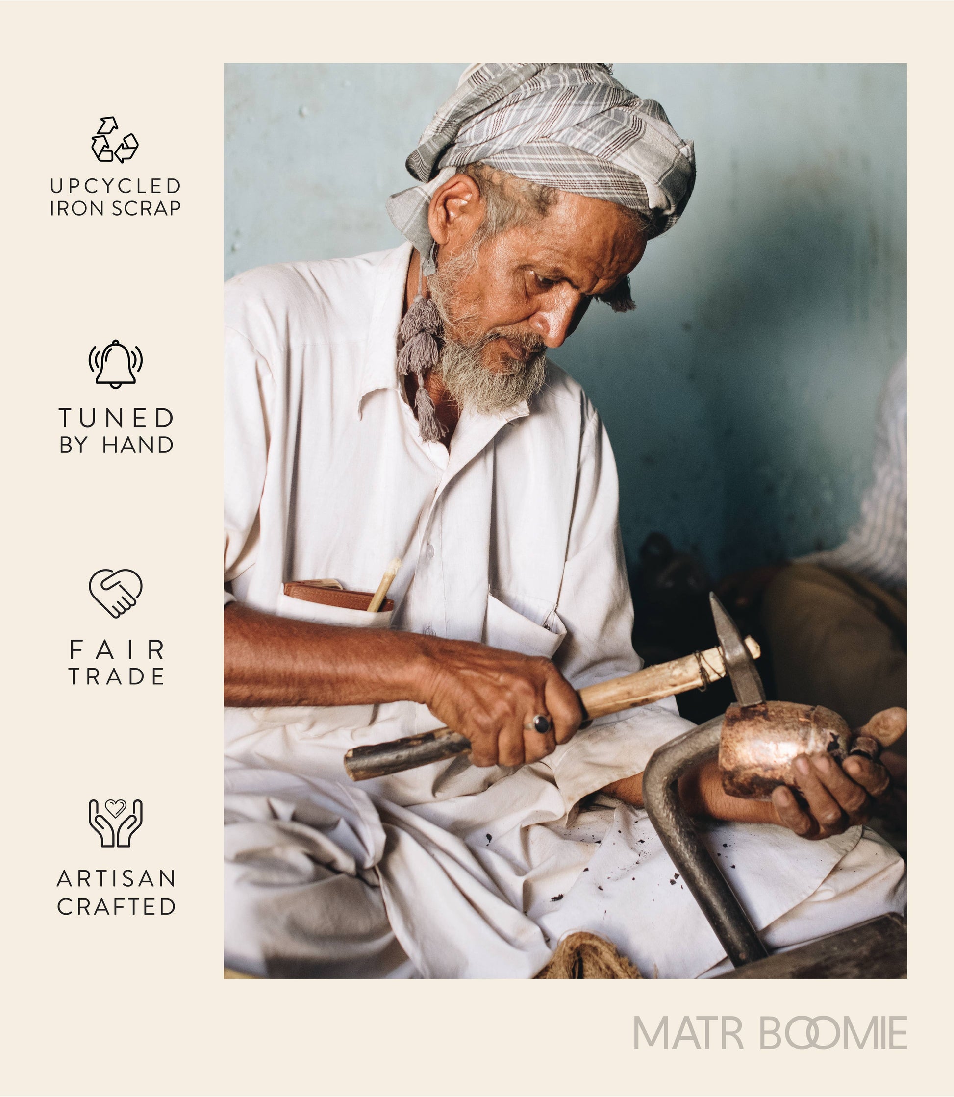 Our Air Element Bell Chime Collection incorporates age-old bell making techniques in modern, versatile designs featuring handcrafted metal bells. Bell making is a traditional artform passed down for generations in certain regions of India. This lightweight wind chime is finished with a wooden bead accent and convenient jute hanging loop. WARNING: This product can expose you to chemicals including lead, which is known to the State of California to cause cancer. For more information, go to "https://www.p65warnings.ca.gov/".