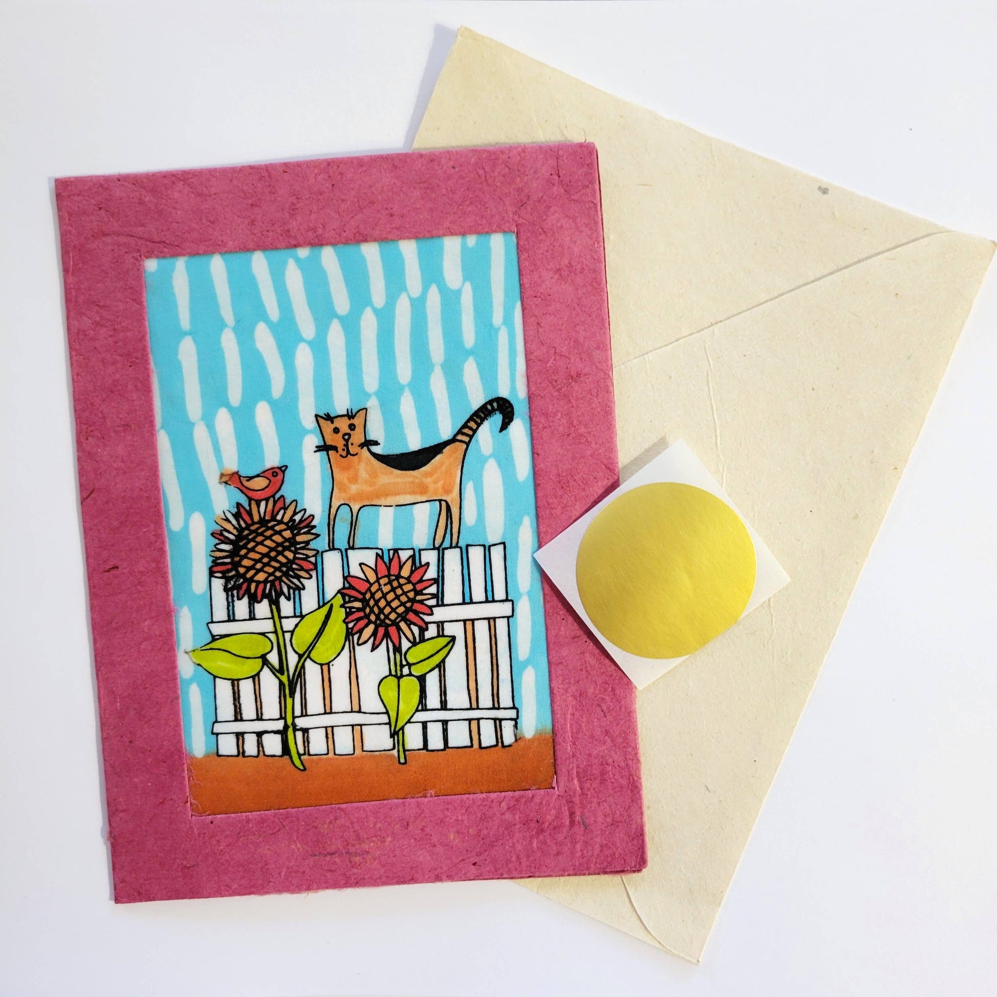 Esta divertida tarjeta de batik capta la naturaleza peculiar y ocasionalmente desafiante de tu gato. Nuestras tarjetas de notas batik más vendidas son populares no solo como tarjeta tradicional, sino que a menudo se enmarcan como arte.