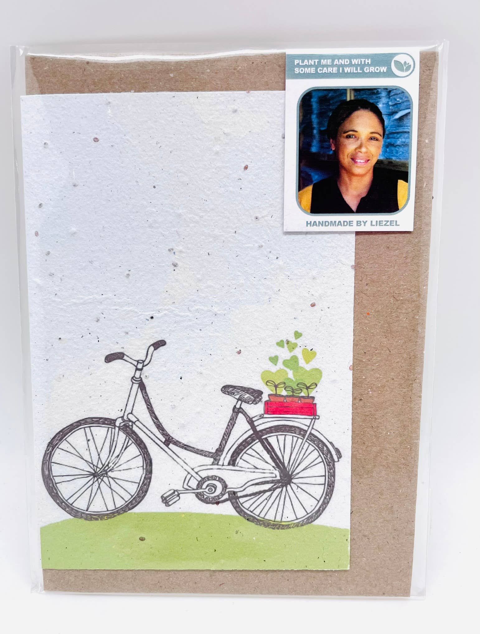 Greeting cards made in South Africa with recycled paper and seeds, giving the recipient the option to plant the card and grow flowers such as snapdragon and alyssum. All cards are blank inside and sold individually. The name and photo of the artisan who created the card will be shown on the insert or sticker, depending on packaging chosen.