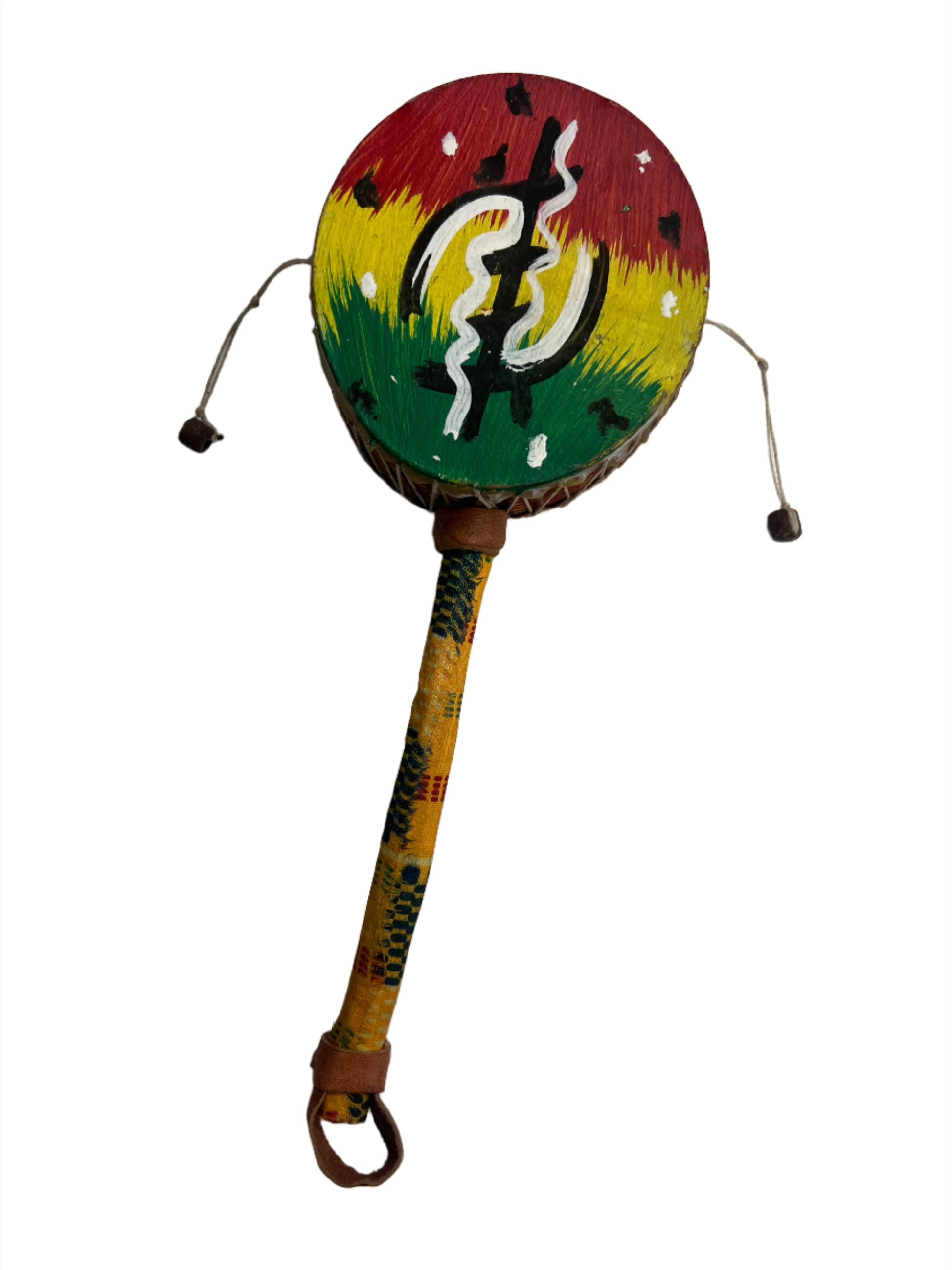 Este es el regalo perfecto para tus sobrinos y sobrinas ;) En serio, estos pequeños tambores de mano compensan en sonido lo que les falta en estatura. ¡Hecho con un mango simple, cabezas de piel de cabra y adornos kente con pequeñas cuentas de vidrio reciclado para crear la fiesta!