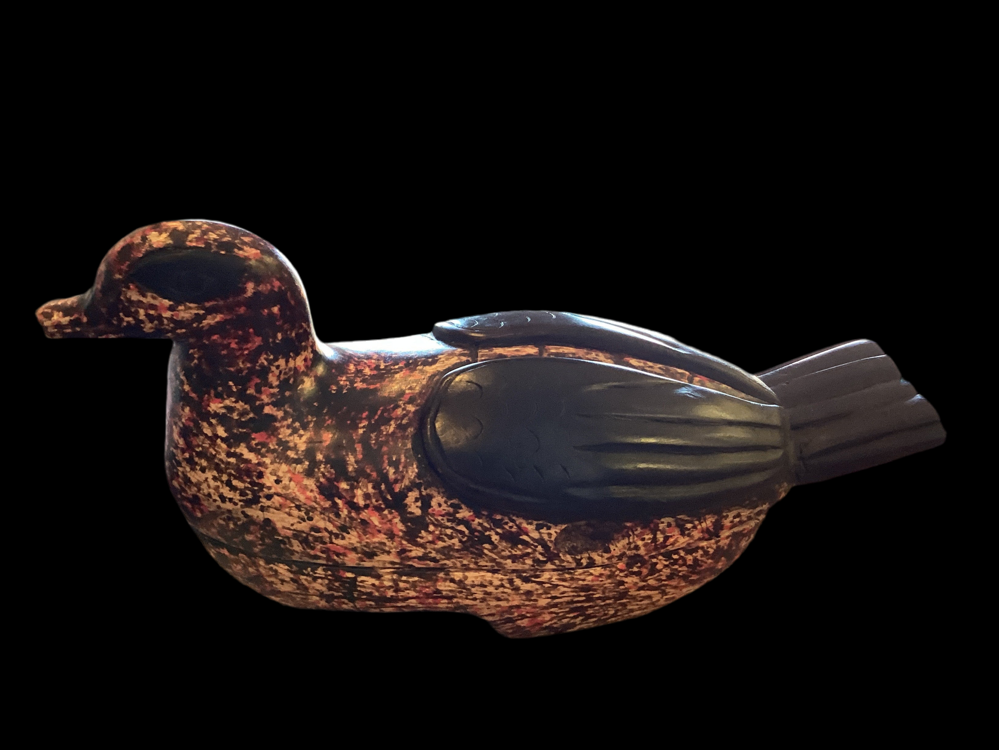 This delightful jewelry box is hand card in Ghana from reclaimed wood. It measures 11“ x 3“ x 5“. Functional and also a wonderful conversation piece.