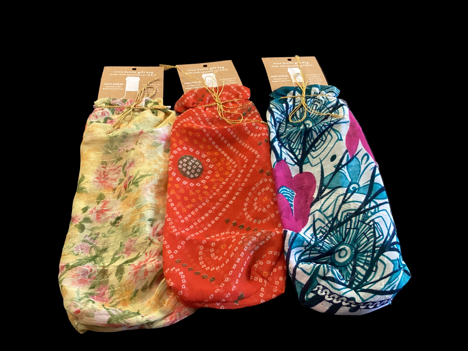 These gorgeous gift bags are made with upcycled sari fabric and are the perfect gift. They come in a variety of colors and are handmade in India. They are Eco, friendly and tree free.