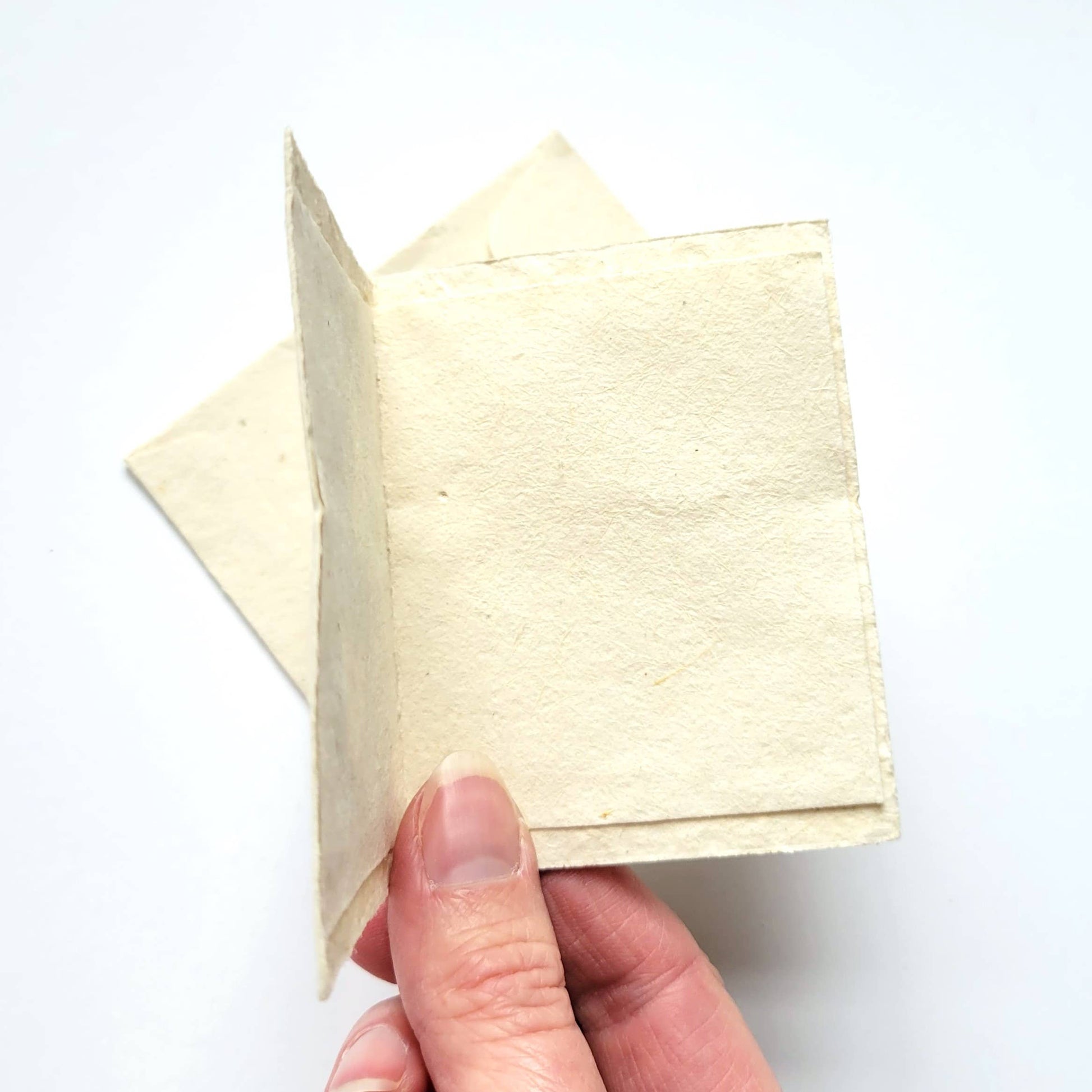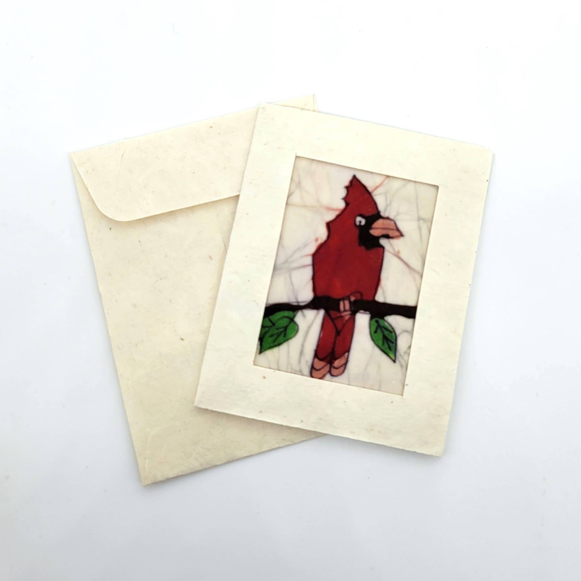 In Nepal, leprosy has been eradicated, but the stigma remains. Those cured, and their families, are still seen as unclean. They earn a living making batik art, a process requiring multiple steps of dying and waxing cotton fabric. Batik cotton and paper card One card with non-sealing envelope Wrapped in sleeve Blank inside Due to hand drawn process, each will have variations.