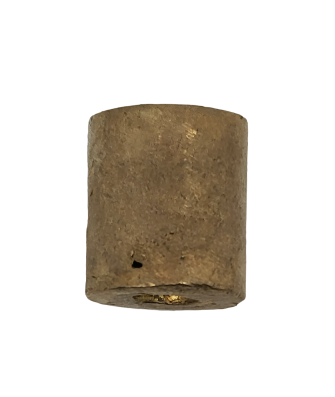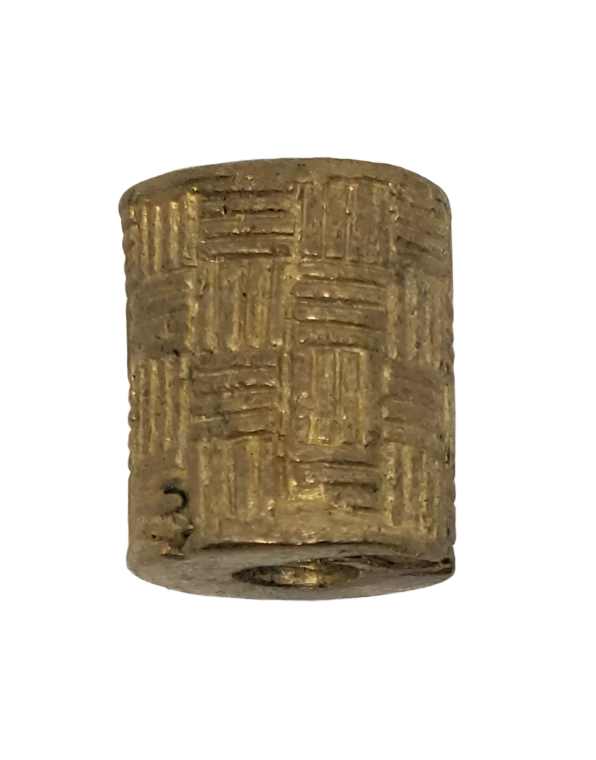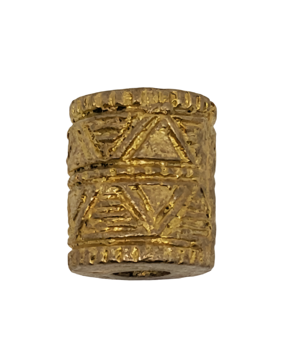 This bead is handcrafted in the lost wax cast brass tradition. Each piece is first formed in beeswax, then covered in hard clay. The clay pieces are heated in a handmade stone oven and the brass is poured into the void created by the beeswax.
