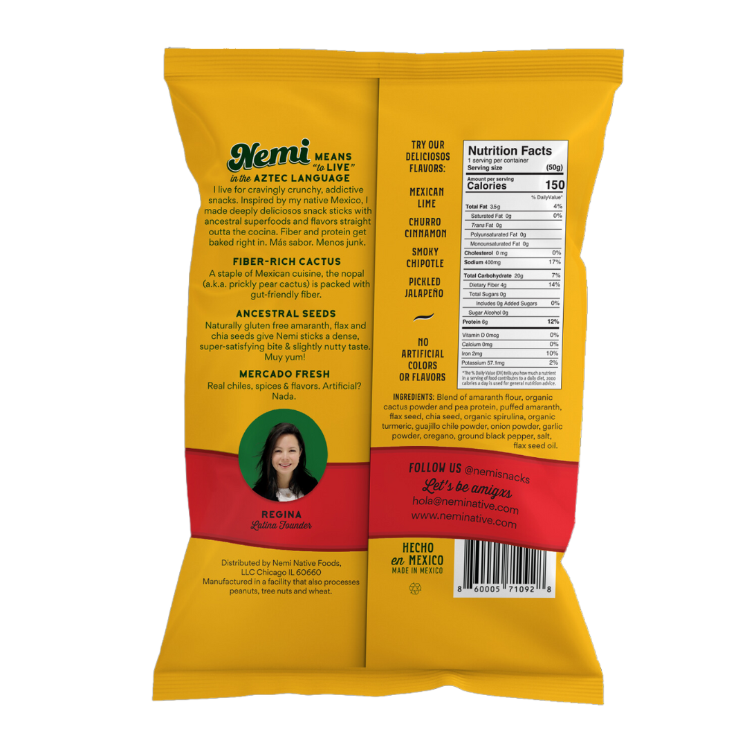 Nemi Snacks redefines the snacking experience with its range of plant-based snacks, combining a crunchy texture with rich, Mexican-inspired flavors. Our mission is to elevate Latin cultura through better-for-you snacks with sombrero-free branding. Our snacks are a treat for your palate y a celebration of tradition and modern health-conscious choices.
