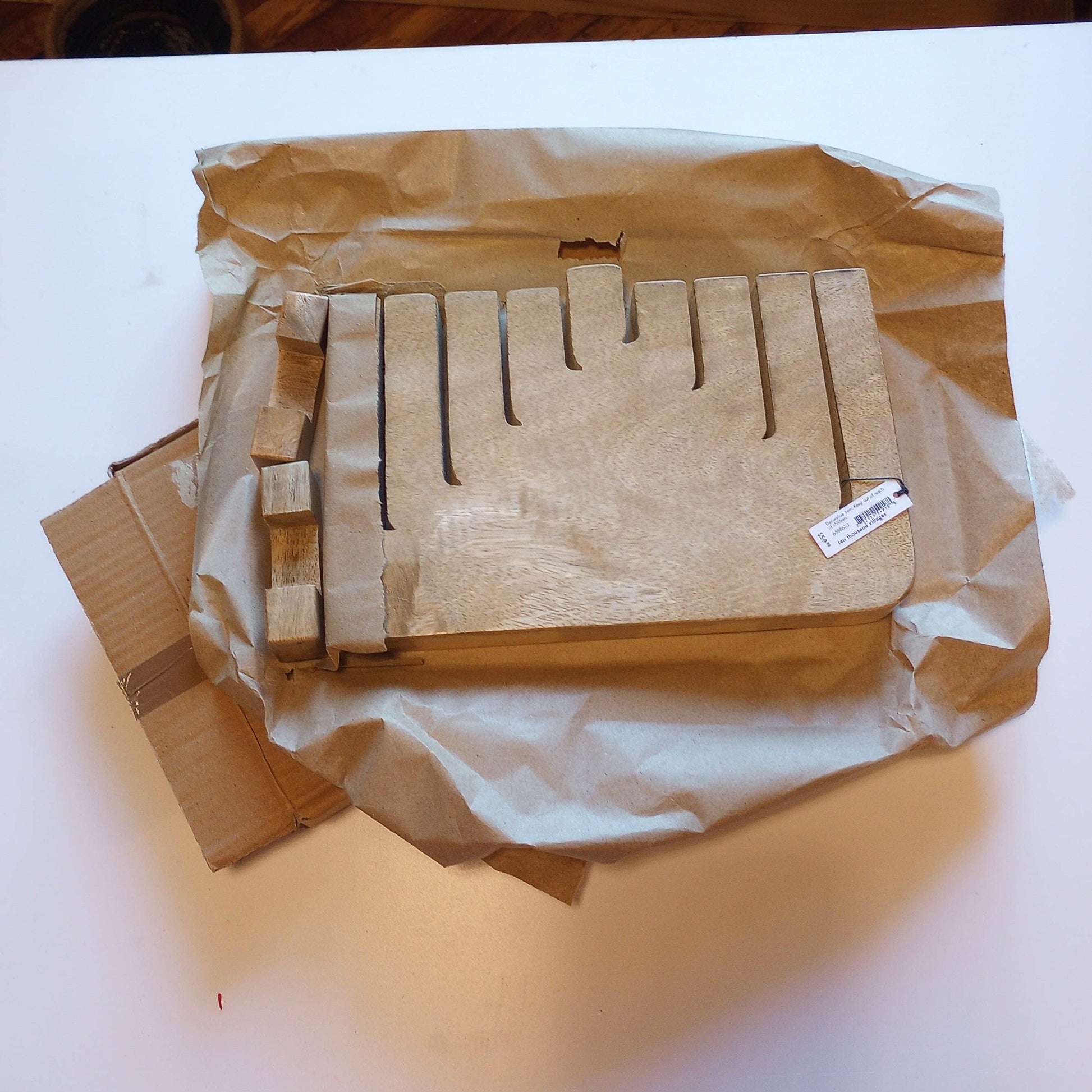 * Available only in the US - Materials: Mango wood, stainless steel - Measures: 11"L x 1.4"W x 7.5"H  - Colors: Natural wood - Candles not included - Handcrafted in India