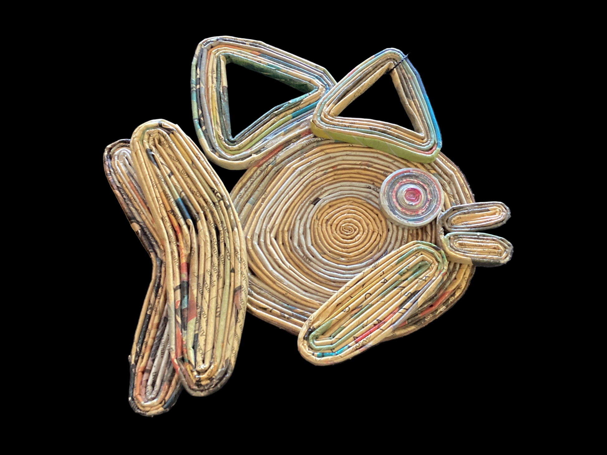 This whimsical bird is made out of paper.