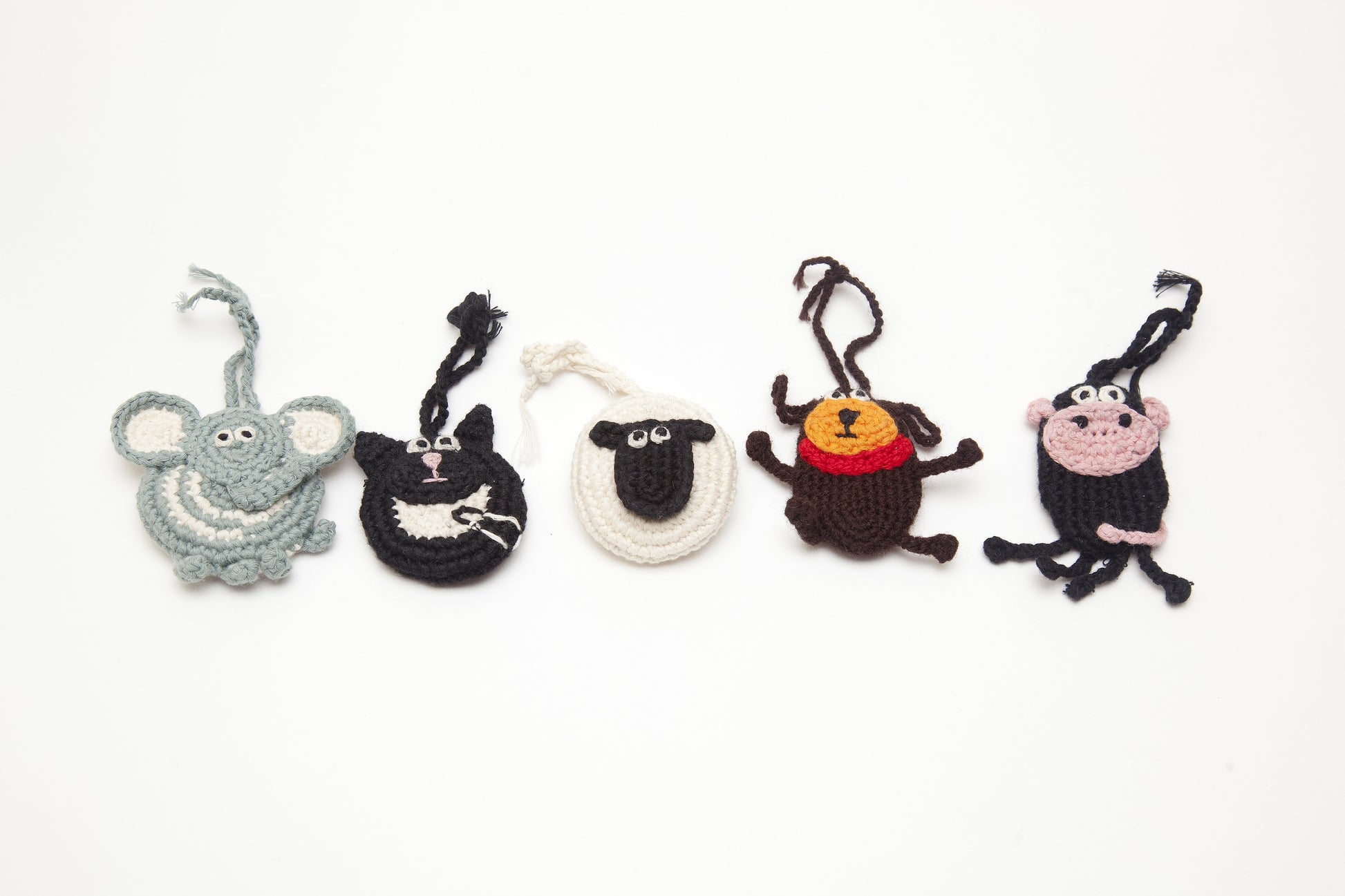 Handcrocheted ornaments in sweet animal designs. They make a heartwarming gift, tree ornament or rearview mirror companion. Made with love in Zambia by the women of Little Ndaba, inspired by the beauty of their natural surroundings and the joy animals bring to us.